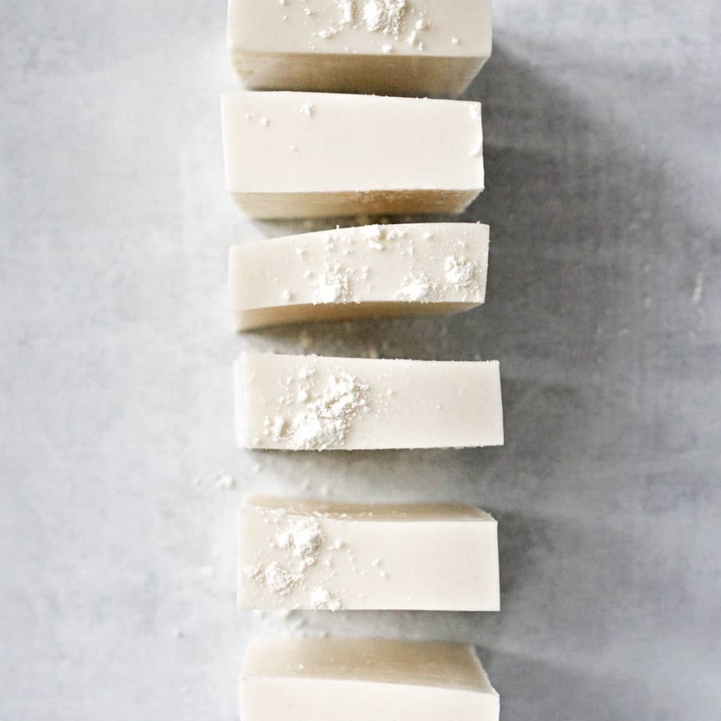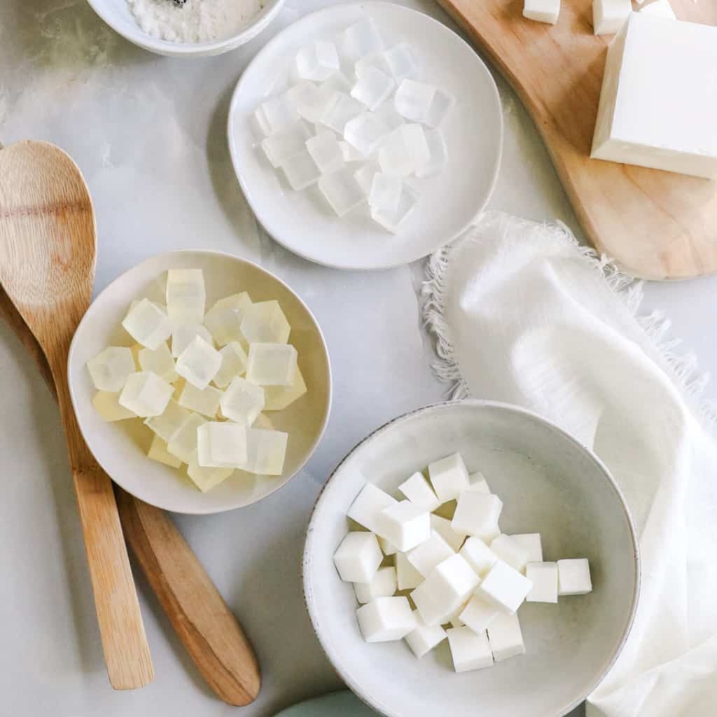 B3: Đợi xà bông đông lại thành hình( chia nhỏ kích cỡ bằng dao nếu khuôn cỡ lớn) và sử dụng.