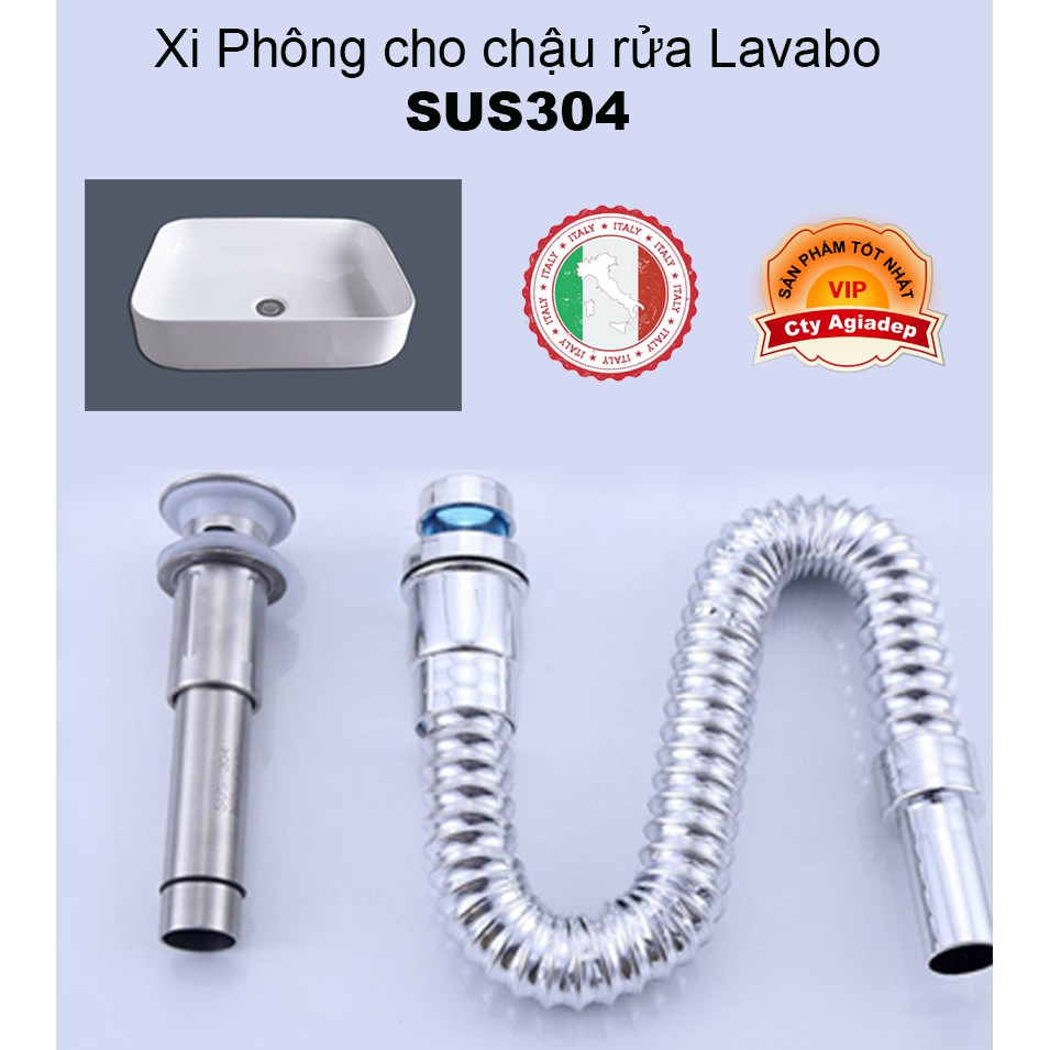 Phông Lật Xi Phông cho chậu rửa Lavabo - Thép ITALIA cao cấp SUS304 100 năm ko rỉ