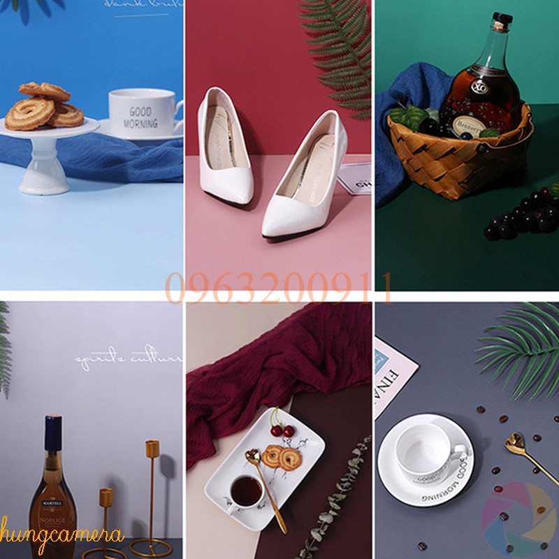 - Kích thước phông khoảng 55x85cm thoải mái chụp sản phẩm kích thước nhỏ: Mỹ phẩm, trang sức, kính, đồng hồ, giày dép, mũ nón, món ăn ...