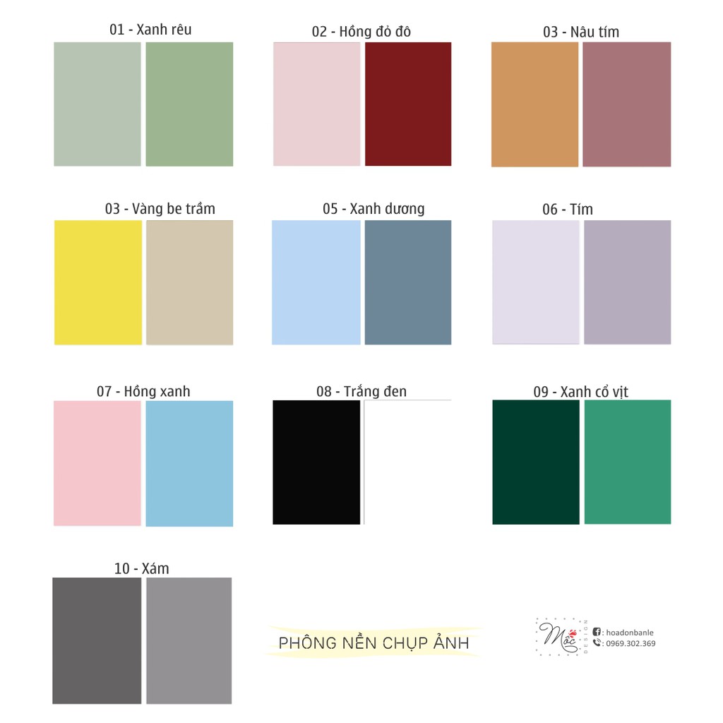 Phông nền chụp ảnh sản phẩm rất quan trọng quyết định yếu tố đẹp của bức ảnh, hãy đầu tư 1 chút và bạn sẽ thu lợi 1 đống cho doanh số bán hàng của mình.* Thông tin: Phông nền 2 MẶT màu trơn pastel đều là các màu rất dễ dùng và cho lên bức ảnh đảm bảo đẹp