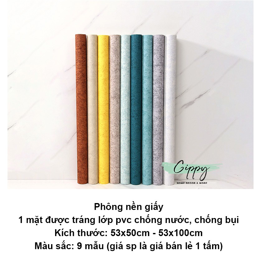 Giới thiệu Phông nền giấy giả xi măng có mặt pvc chống nước, nhiều màu - phụ kiện trang trí - Gippy Decor
