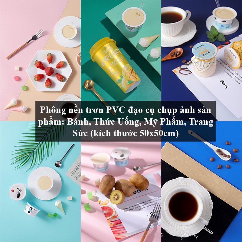 Phông nền chụp ảnh chất liệu PVC trơn loại xịn kích thước50x50cm-Tấm phông nền PVC có ưu điểm: chống lóa chóa ảnh, chống nhăn, không thấm nước, độ bền cao, không dễ bị rách như phông nền bằng vải hoặc bằng giấy. Các loại phông màu bằng chất liệu PVC thường xuyên được sử dụng chụp các loại nước uống, món ăn, bánh kem, mỹ phẩm, trang sức ...vì mau sắc chúng mang lại sắc nét tươi mới.