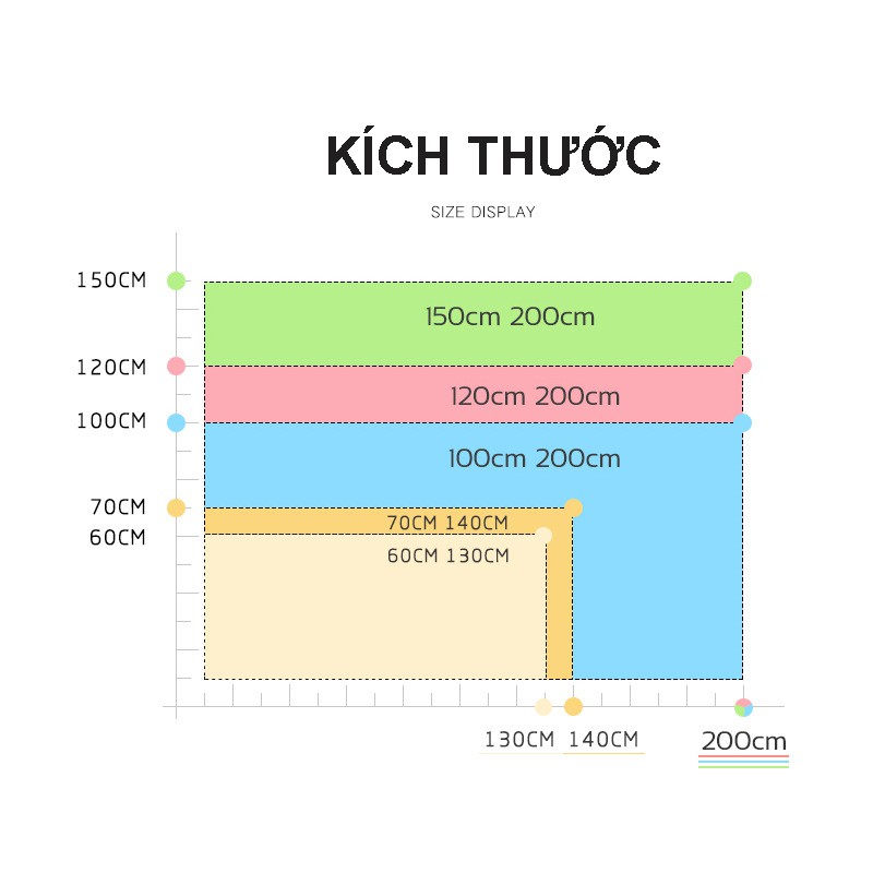 - Kích thước: 70x140 cm ( + / - 2cm ), 100x200 cm ( + / - 2cm )
