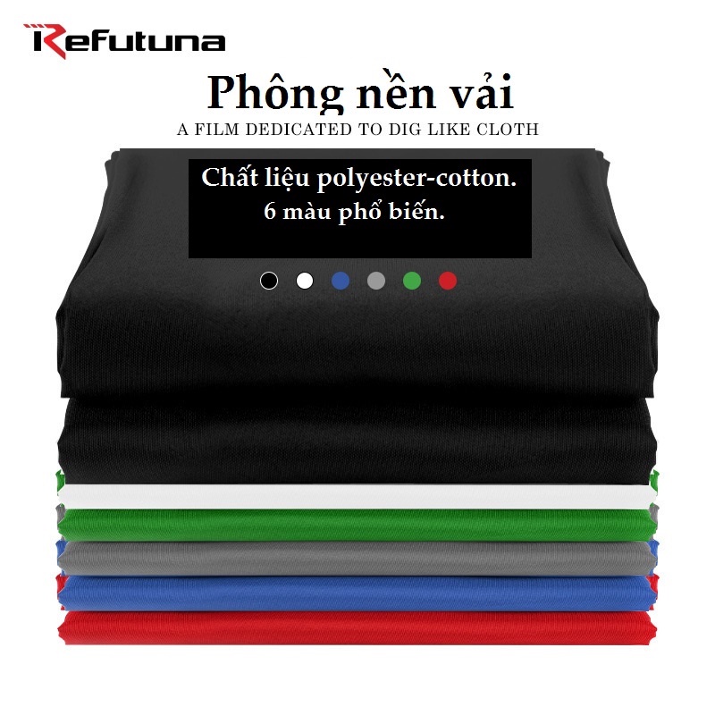 Phông nền vải sản phẩm chuyên dụng không thể thiếu trong mỗi studio sản phẩm phù hợp với hầu hết các studio lớn hoặc nhỏ, ngoài ra có thể dùng setup chụp trong gia đình hay tiệm buôn bán.Sản phẩm là vải pha giữa polyester và cotton giúp bề mặt chống nước và có thể ủi phẳng một cách dễ dàng.