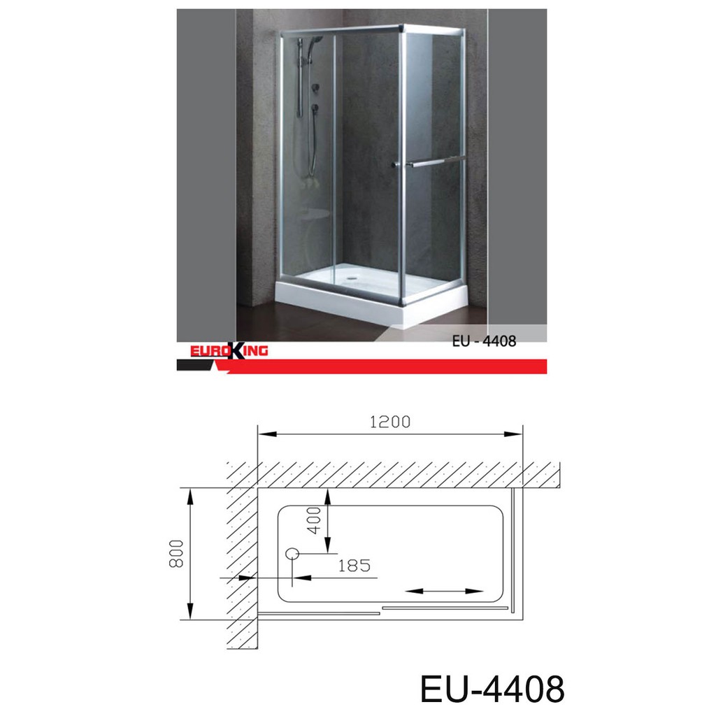 Kiểu dáng chữ nhật với góc cạnh tạo cảm giác khỏe khoắn cho cabin tắm vách kính Euroking EU-4408. Với kích thước nhỏ:800x1200x2150mm, đây là sản phẩm vách tắm kính kích thước trung bình phù hợp lắp đặt với không gian phòng tắm vừa hoặc lớn.