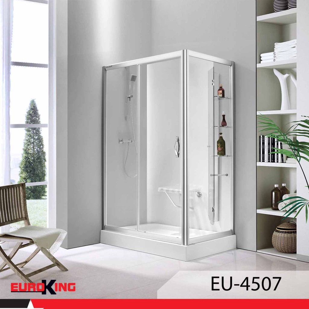 Bồn tắm đứng Euroking EU 4507 với thiết kế vuông vắn, tinh tế.tích hợp với không gian xung quanh. Bố trí nội thất bên trong tiện dụng với các khay kệ.
