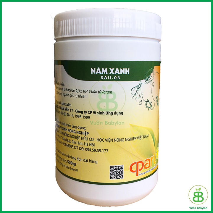 Vườn Babylon Xin Kính Chào Qúy Khách!Chế phẩm Vi Sinh Phòng Trừ Sâu, Nhện Đỏ, Bọ Trĩ, Sùng Đất Sinh Học NẤM XANH