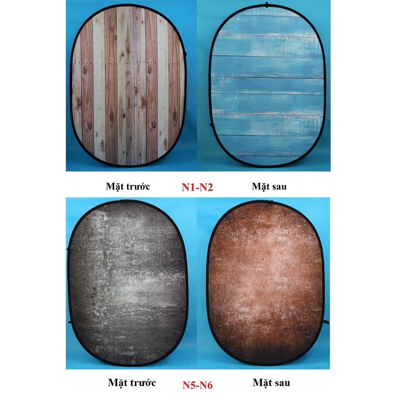 Cameras & Flycam > Phụ kiện máy ảnh > Thiết bị ánh sáng và phòng chụp || Phông vải studio 2 mặt khung uốn dẻo di động 1.5x2m, Phông loang, vân gỗCòn hàng