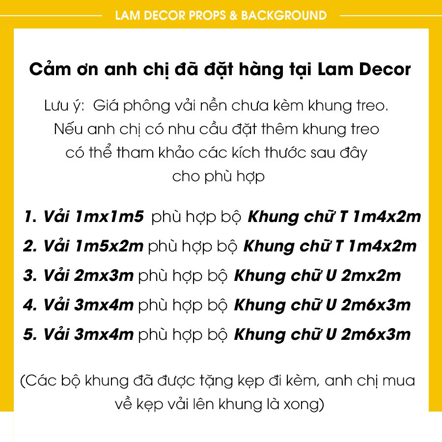 Kích thước phông khổ lớn 3 loại từ 2-5m miếng liền gọn đẹp, được làm từ chất liệu vải tổng hợp Cotton + Poly dày dặn cao cấp đạt tiêu chuẩn quốc tế.