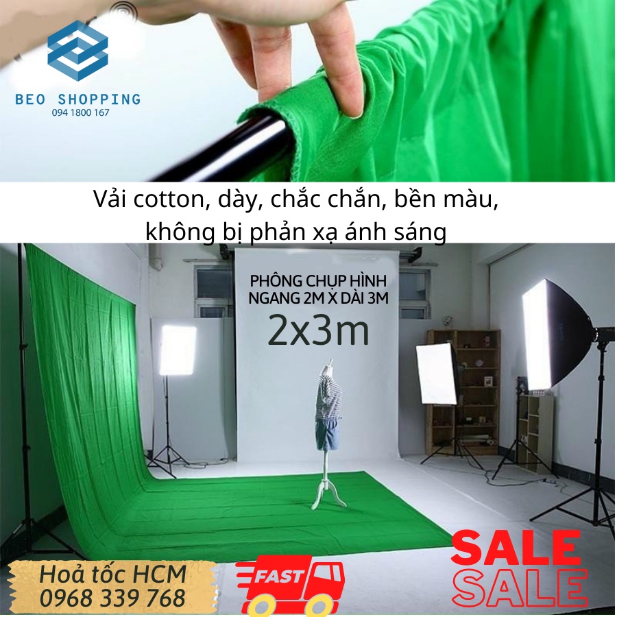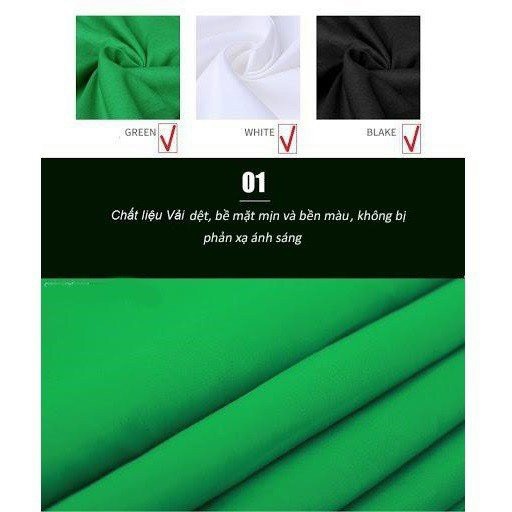 Cameras & Flycam > Phụ kiện máy ảnh > Thiết bị ánh sáng và phòng chụp || Phông vải xanh lá và màu trắng tách nền chất vải cotton cao cấp dùng để chụp hình, chụp sản phẩm, quay video cho studioCòn hàng