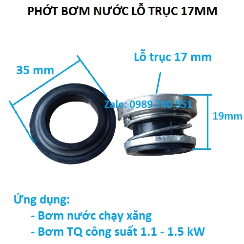 Giới thiệu Phớt bơm nước chạy xăng - bơm nước 1.1 -1.5kw - phớt vỉ lỗ trục 17mm