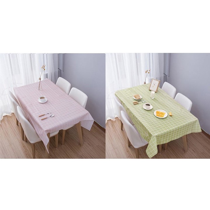 Tấm phủ bàn ăn nhựa mềm chống nước bụi bẩn họa tiết caro trang trí phong cách châu Âu hiện đại trẻ trung sang trọng