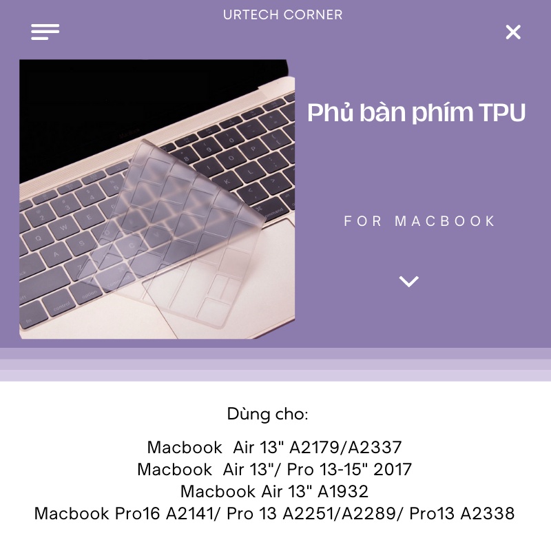 Máy tính & Laptop > Phụ Kiện Máy Tính > Miếng Dán Bàn Phím || Phủ bàn phím Luvlee Urtechcorner cho Macbook Air 2017/2018/2019/2020 chất liệu TPU siêu mỏng chống nước chống bụiSo sánh giá ×
