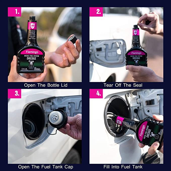 + Cho 1 chai phụ gia nhiên liệu dầu đổ trực tiếp vào bình dầu đầy. Sản phẩm sẽ xử lý 60 - 80 lít. Để cho kết quả tốt nhất, hãy sử dụng khi xe đi được 12000km. Sản phẩm an toàn khi sử dụng với các chất phụ gia khác của Flamingo