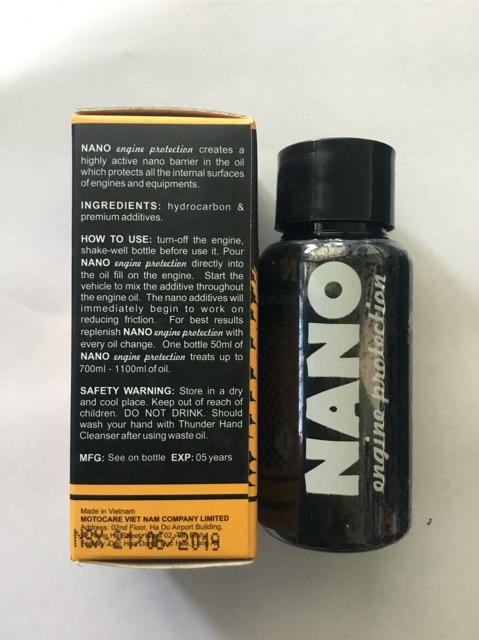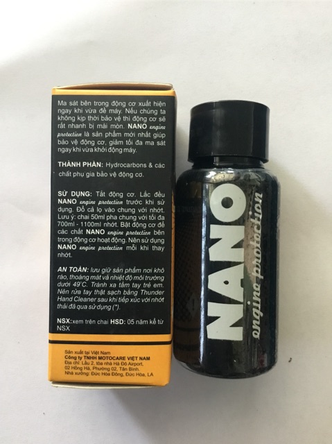 Ma sát bên trong động cơ xuất hiện ngay khi vừa đề máy. Nếu chúng ta không kịp thời bảo vệ thì động cơ sẽ rất nhanh bị mài mòn. Dầu NANO engine protection là sản phẩm mới nhất giúp bảo vệ động cơ, giảm tối đa ma sát ngay khi vừa khởi động máy.HƯỚNG DẪN SỬ DỤNG: Tắt động cơ. Lắc đều NANO engine protection trước khi sử dụng. Đổ cả lọ vào chung với nhớt. Lưu ý: chai 50ml pha chung với tối đa 800ml - 1300ml nhớt. Bật động cơ để các chất NANO engine protection bên trong động cơ hoạt động. Nên sử dụng dầu NANO bảo vệ động cơ Thunder nano engine protection mỗi khi thay nhớt.