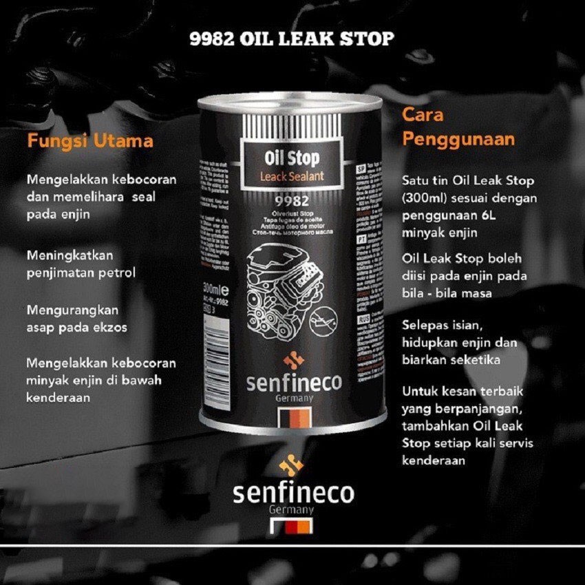Giới thiệu Phụ Gia Phục Hồi, Làm Kín Động Cơ Xe Dung Dịch Chống Xì Nhớt, Chống Rò Rỉ nhớt Senfineco Oil Leak Stop 9982 - Tặng Khăn