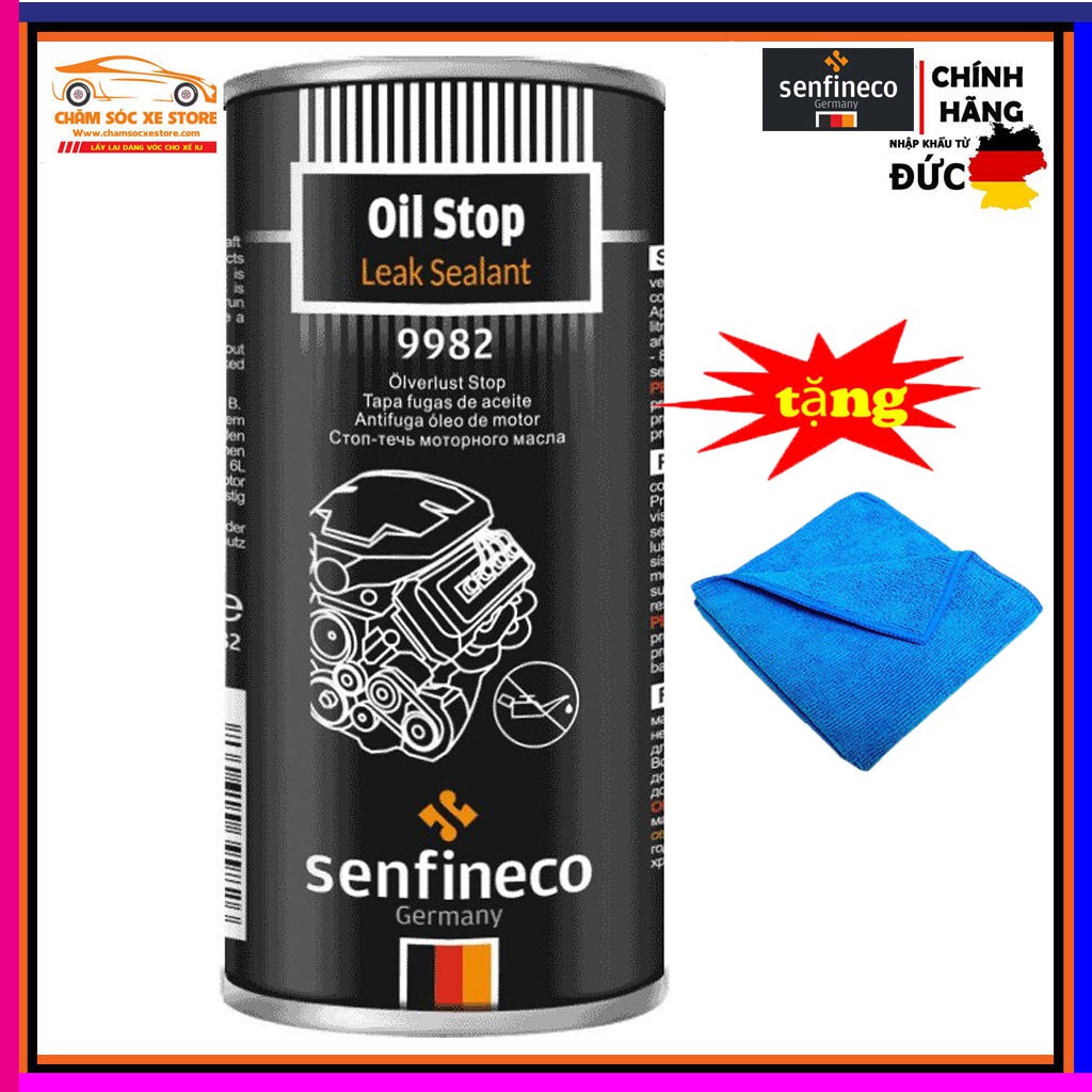 Phụ Gia Phục Hồi, Làm Kín Động Cơ Xe Dung Dịch Chống Xì Nhớt, Chống Rò Rỉ nhớt Senfineco Oil Leak Stop 9982 - Tặng Khăn