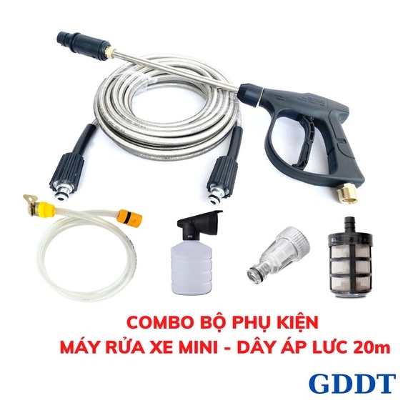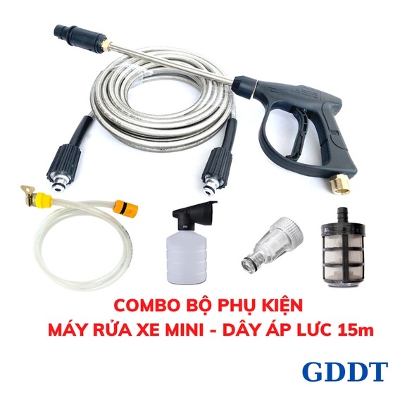 Bộ Phụ kiện máy rửa xe, Phụ kiện máy rửa xe mini, Dây áp lực 10m, 15, 20m