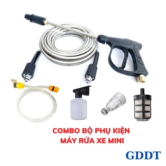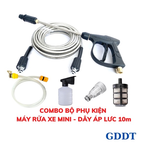 Giới thiệu Bộ Phụ kiện máy rửa xe, Phụ kiện máy rửa xe mini, Dây áp lực 10m, 15, 20m