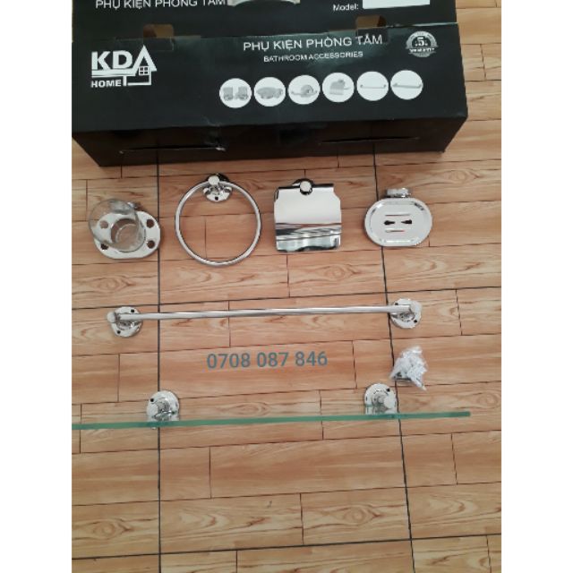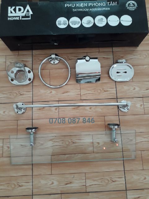 Bộ phụ kiện nhà tắm 100% inox, bao gồm 6 món:- Giá để bàn chải, ly súc miệng