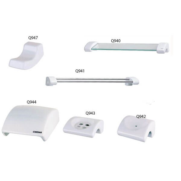 Bộ phụ kiện 6 món CAESAR Q940A6 bằng sứ đến từ thương hiệu thiết bị vệ sinh Caesar– Nhóm mặt hàng: Giá đựng vật dụng phòng tắm