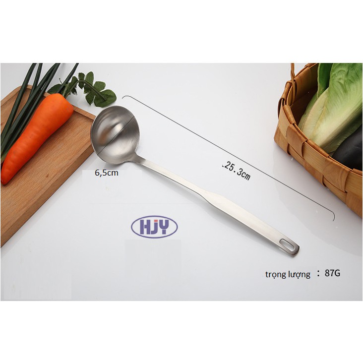 1.Vá(muôi) dài 29,7cm x7,7cm trọng lượng 125gr inox 304