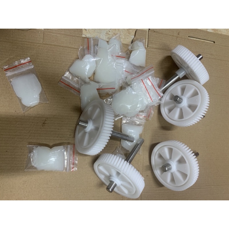 phụ kiện bánh răng của máy ép dài 10,3cm và rộng 7,7cm . vừa rất nhiều hãng. satvm je07 je220-25m00 và hongxin 311,312,313,và jiplai 06,07 bánh răng nhựa nguyên chất , không phải nhựa tái sinh nên chống mòn tốt. khi ta dùng lâu rồi bánh răng sẽ mòn đi và yếu dần đến khi ép không được nữa thì ta nên thay bánh răng mới. hoặc khi ta ép đồ cứng quá ví dụ như ổi chưa bỏ hạt hoặc quả cóc... bánh răng bị sứt thì ta nên thay bánh răng mới.