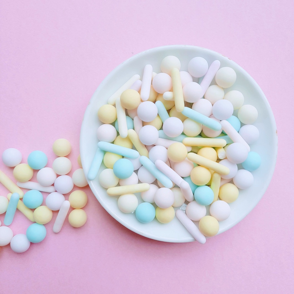 - Mọi người nhanh tay lựa chọn 120g bi đường tròn, dài, tim, sao nhiều màu lì, bóng để trang trí cho những chiếc bánh đẹp nhất của cửa hàng mình nào