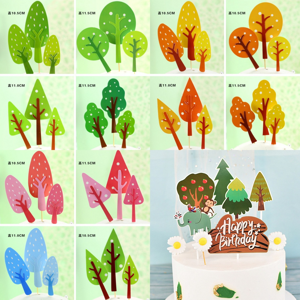 - Tên sản phẩm: Phụ kiện bánh sinh nhật bánh kem - Set cắm 3 cây xanh các kiểu trang trí bánh