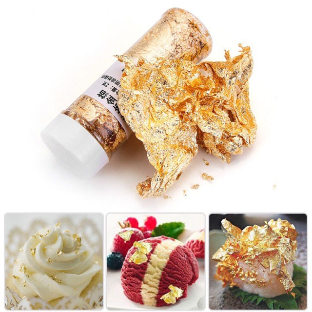 Nhà cửa & Đời sống > Dụng cụ nhà bếp > Dụng cụ nướng & trang trí bánh || Phụ kiện bánh sinh nhật bánh kem - Lá Vàng, Lá Bạc Trang Trí Bánh Lọ 2 grCòn hàng