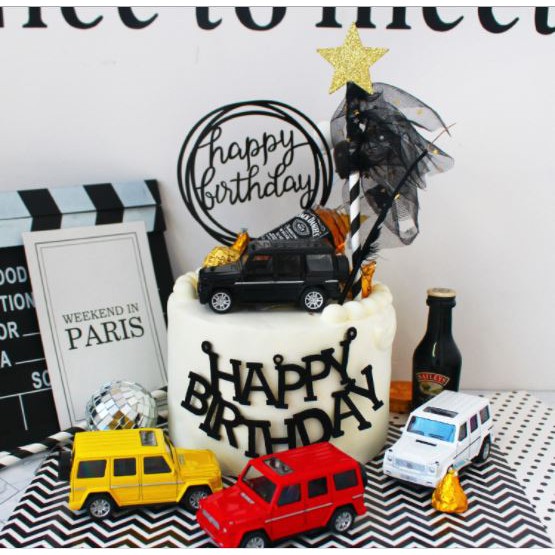 MÔ TẢ : Phụ kiện sinh nhật bánh kem - 1 Xe ô tô SUV vàng, trắng, đen, đỏ