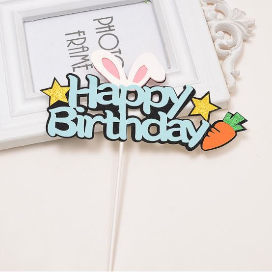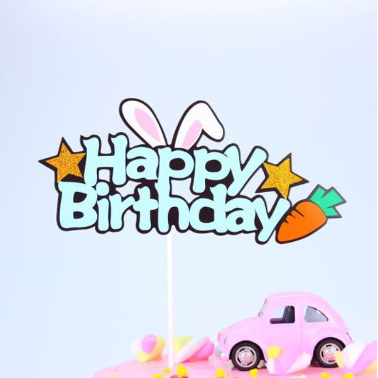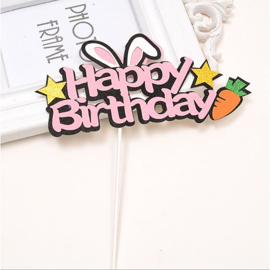 - Tên sản phẩm: Phụ Kiện Bánh Sinh Nhật Bánh Kem - Thẻ cắm giấy Happy birthday tai thỏ cà rốt