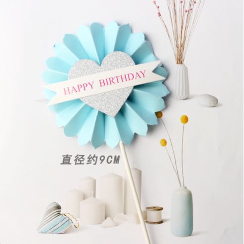 - Que cắm hoa quạt tròn trái tim hpbd trang trí bánh sinh nhật, bánh kem được làm bằng giấy cao cấp loại 1, an toàn đảm bảo khi sử dụng