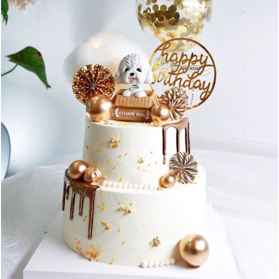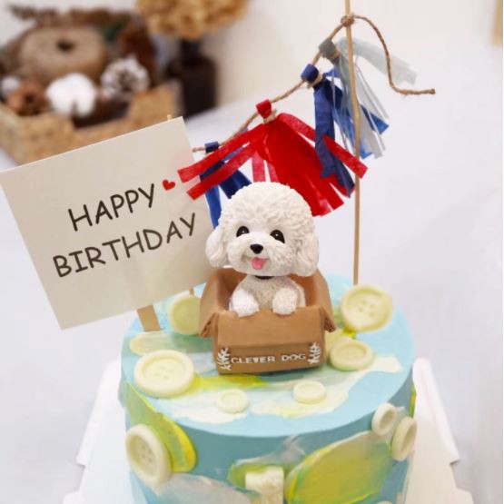 - Tên sản phẩm: Phụ kiện bánh sinh nhật bánh kem - CHÓ NGỒI HỘP TRẮNG, NÂU trang trí bánh