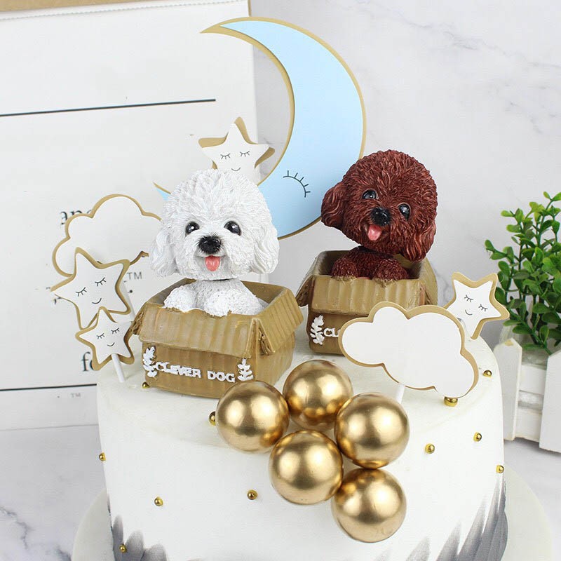 Phụ kiện bánh sinh nhật bánh kem - CHÓ NGỒI HỘP TRẮNG, NÂU trang trí bánh