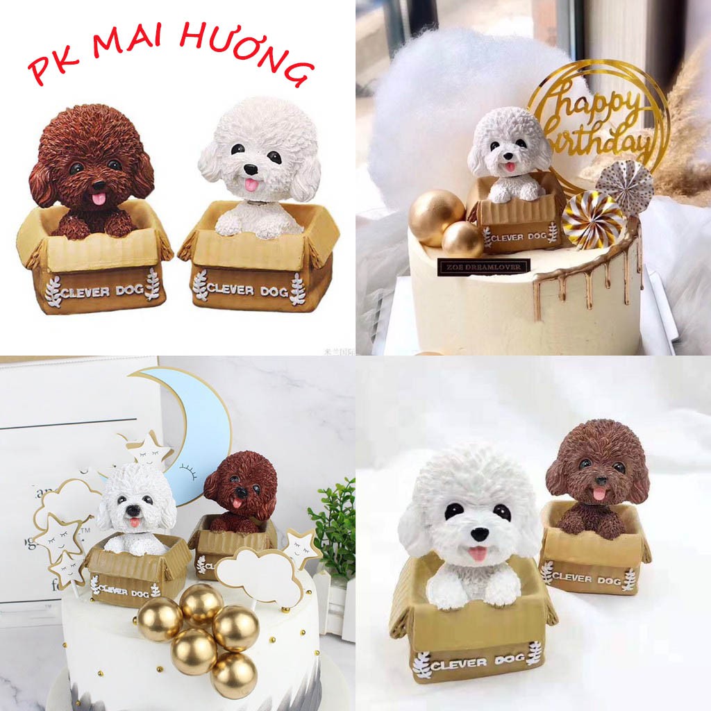 - CHÓ NGỒI HỘP TRẮNG, NÂU trang trí bánh sinh nhật, bánh kem được làm bằng nhựa dẻo cao cấp loại 1, an toàn khi sử dụng