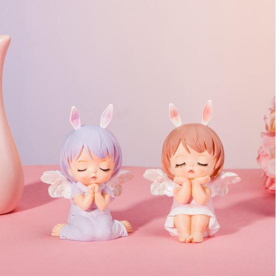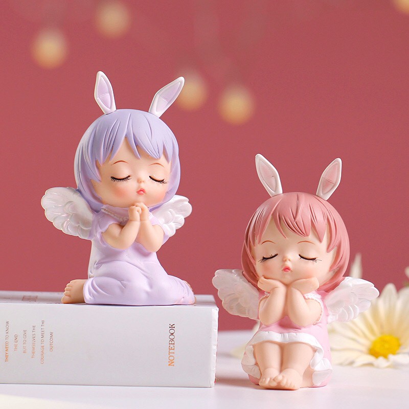- cặp đôi em bé thiên thần hồng tím Trang Trí Bánh Sinh Nhật, bánh kem được làm bằng nhựa cao cấp loại 1, an toàn khi sử dụng