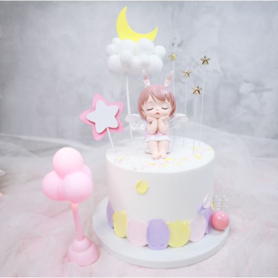 Giới thiệu Phụ kiện bánh sinh nhật bánh kem - cặp đôi em bé thiên thần hồng tím
