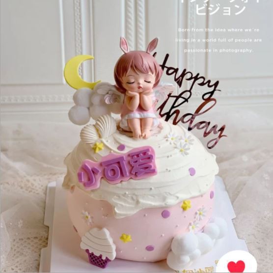 - Tên sản phẩm:Trang Phụ kiện bánh sinh nhật bánh kem - cặp đôi em bé thiên thần hồng tím