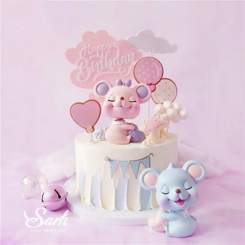 - Xuất sứ: Phụ kiện bánh sinh nhật bánh kem - CẶP ĐÔI CHUỘT XANH HỒNG trang trí bánh