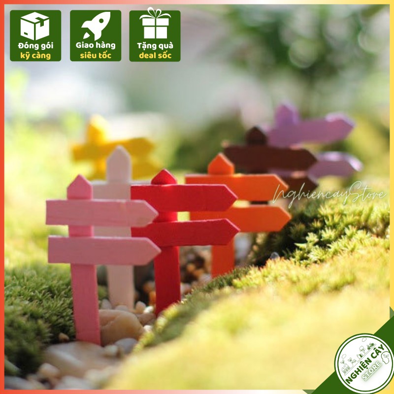 Phụ kiện Biển chỉ đường nhiều màu trang trí tiểu cảnh, cây cảnh, sen đá