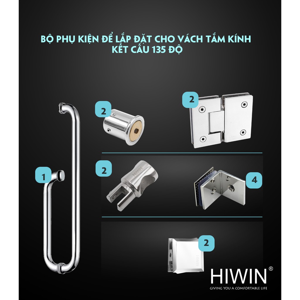 Giới thiệu Bộ phụ kiện cabin tắm kết cấu 180 độ chất liệu inox 304 mặt gương Hiwin PKF-180
