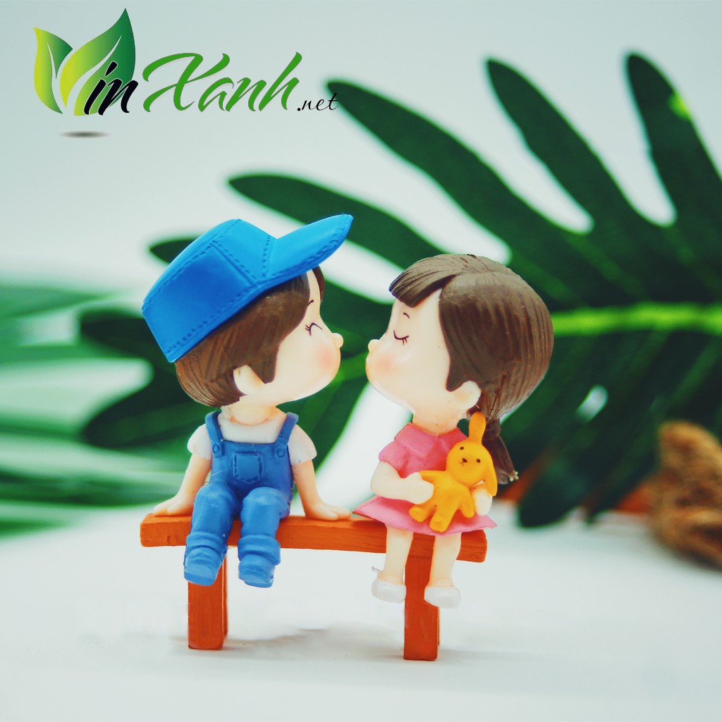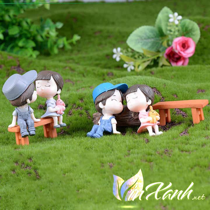 Phụ kiện cặp đôi ngồi trai gái ngồi trên băng ghế.Kích thước tương đối như trong hình.