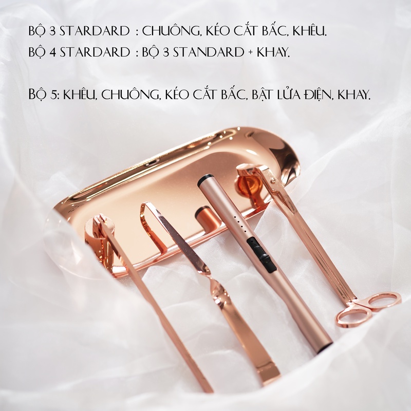 Giới thiệu Phụ kiện chăm sóc nến thơm: khêu, chuông, khay và kéo cắt bấc nến