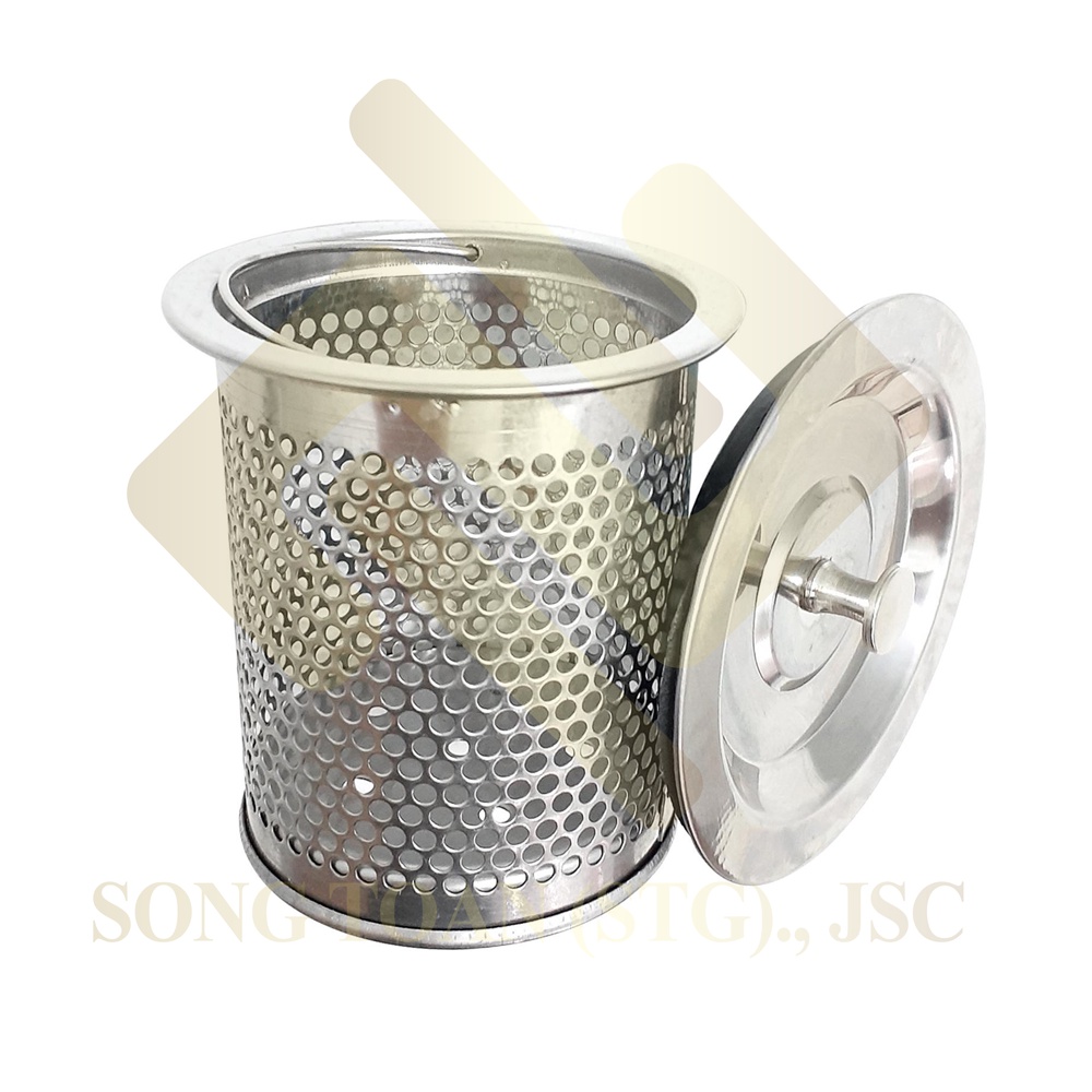 [PHỤ KIỆN CHẬU RỬA] Bộ giỏ lọc rác nắp đậy bồn rửa chén - Chất liệu InoxBộ Giỏ Lọc Rác + Nắp Đậy Bồn Rửa Chén Bằng Inox