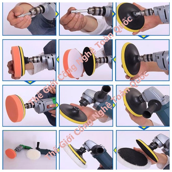 Bộ phụ kiện cho máy đánh bóng xe ô tô mini - phụ kiện đánh bóng điều hòa dùng cho máy khoan và máy mài