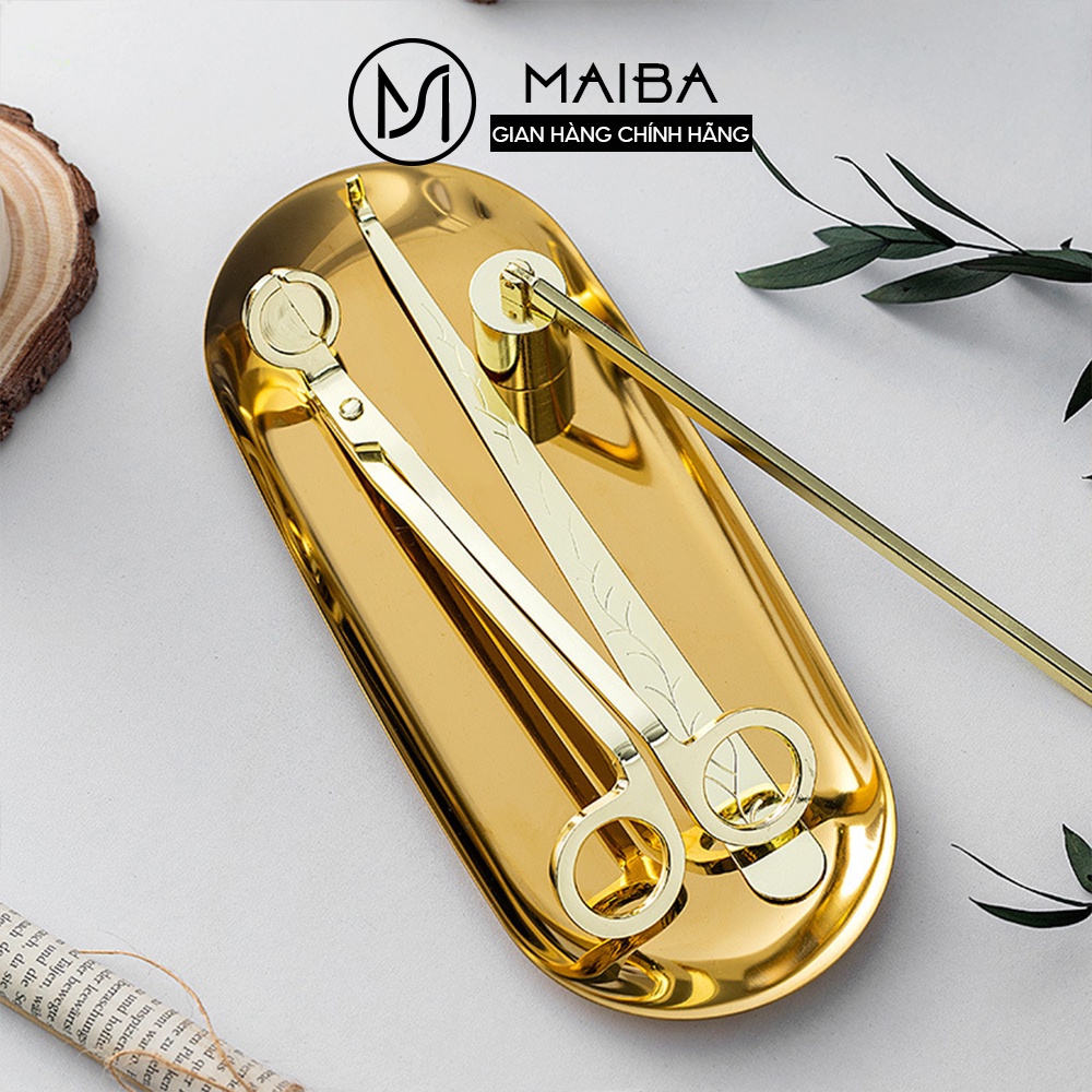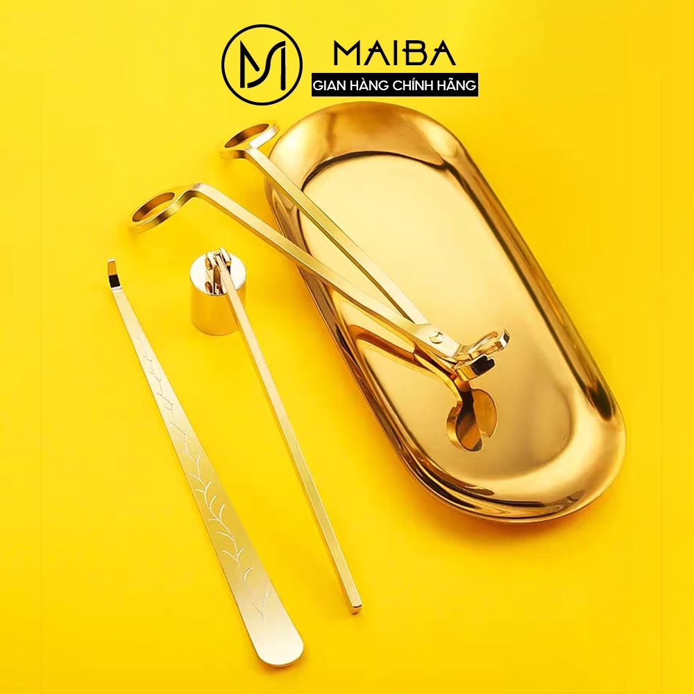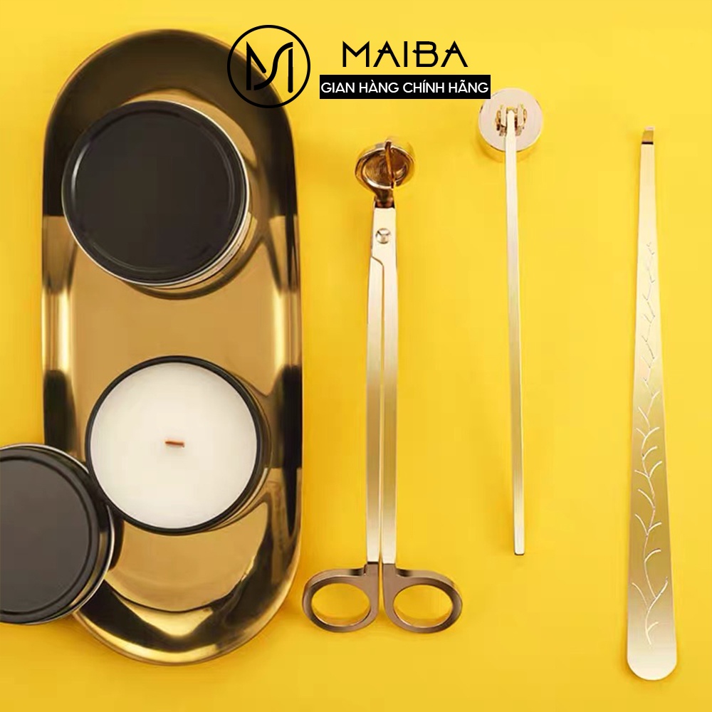 Giới thiệu Bộ phụ kiện chơi nến thơm MAIBA 3 món khêu, chuông, kéo cắt bấc kim loại không gỉ cao cấp