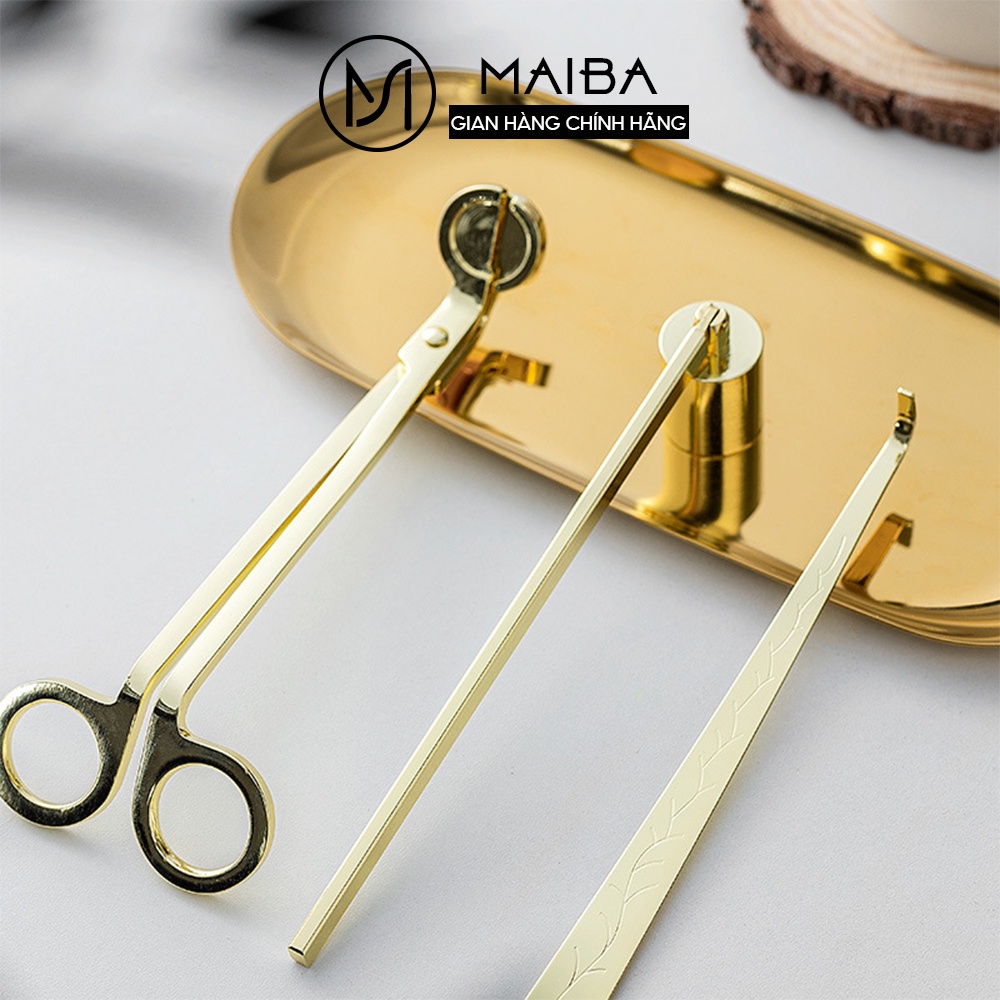 Bộ phụ kiện chơi nến thơm MAIBA 3 món khêu, chuông, kéo cắt bấc kim loại không gỉ cao cấp