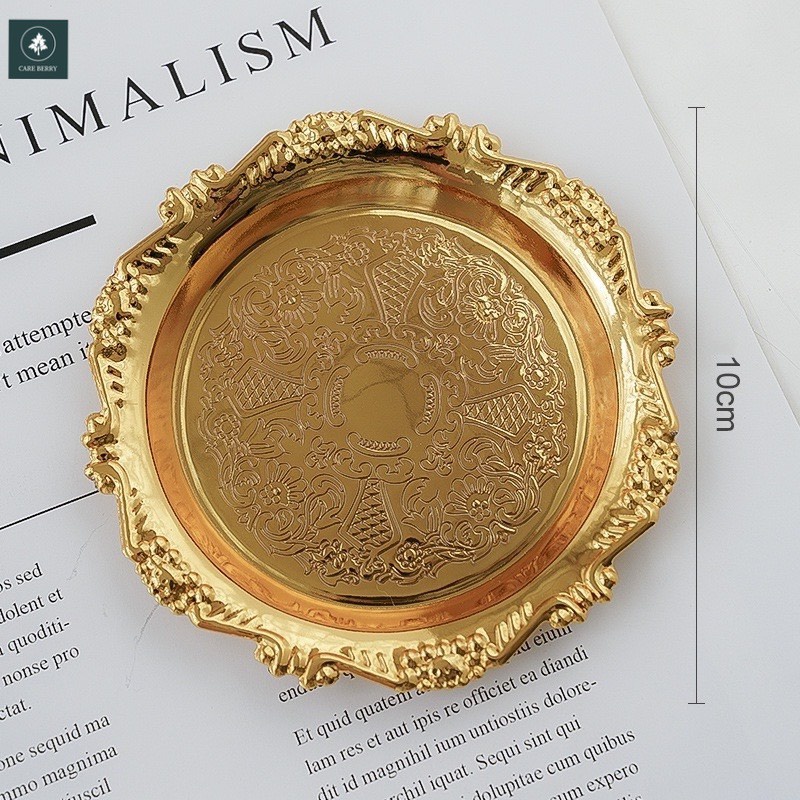 Nhà cửa & Đời sống > Bộ đồ bàn ăn > Dĩa || Phụ kiện chụp ảnh khay decor, đĩa để trang sức bằng thép mạ không gỉ họa tiết cổ điểnCòn hàng