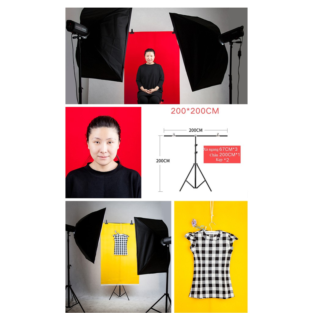 Khung giá treo phông chụp ảnh nền chữ T, livestream, studio kích thước 2x2m (tặng kẹp)- Combo kèm phông nền▶️ Dùng TREO PHÔNG NỀN CHỤP ẢNH, LIVESTREAM (quần áo, giày dép, mỹ phẩm, trang sức, đồng hồ, mắt kính, bóp, ví, ốp lưng, phụ kiện điện thoại, đồ ăn, thức uống, thực phẩm chức năng…) khi dùng chung với phông nền PVC, phông nền xi măng, phông nền vân gỗ, phông nền lụa, phông nền kim sa, phông nền loang, phông nền cavas, phông nền vải bố, phông nền vải linen, phông nền lụa, phông nền trơn và các đạo cụ, phụ kiện khác như bìa tạp chí, bìa giấy caro, cuốn tạp chí, tấm lục bình, tấm cói, tờ báo vintage, mô hình vintage, máy bay vintage, khoanh gỗ, thớt gỗ, thuyền biển, phao biển, lát trái cây, đá viên, trái cây, vải thưa, vải đính ngôi sao, tổ chim, bàng tên shop 2 mặt, cuộn dây thừng, quả thông, hay gương, chậu cây, thớt gỗ, khay kim loại, khay inox, các loại hoa, các loại lá, hoa khô, set chụp ảnh chủ đề biển, set chụp ảnh vintage để chụp ảnh.